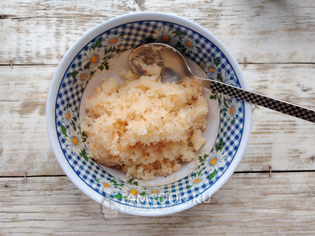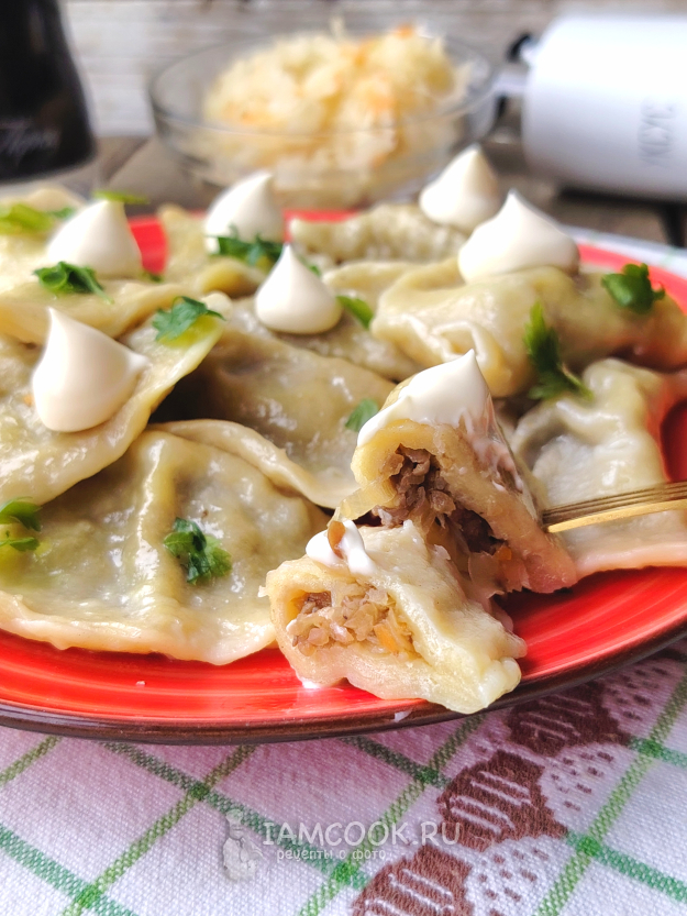 Для начинки капусту лучше немного измельчить блендером, чтобы вареники было удобнее наполнять начинкой.