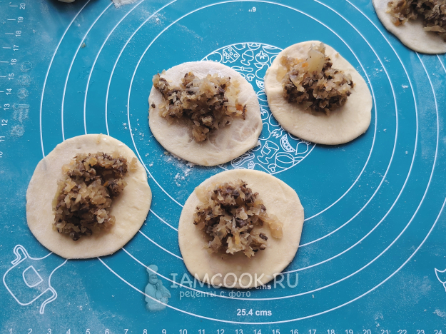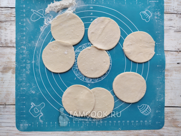 Сделать вырубки – заготовки вареников - при помощи стакана.