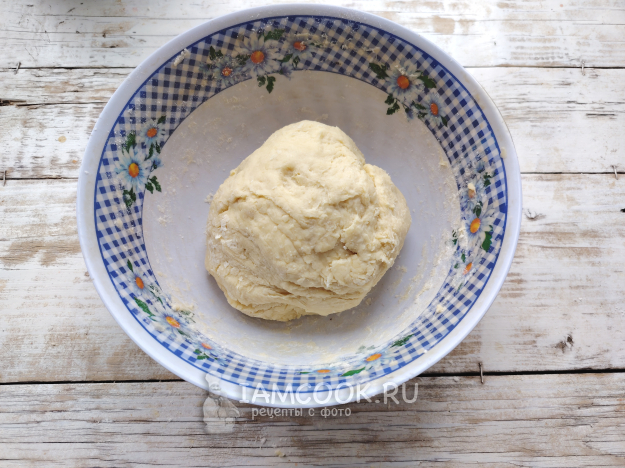 Поскольку качество, плотность этого продукта у разных производителей заметно отличается, для получения теста нужной консистенции ее может потребоваться чуть больше или меньше. Замесить эластичное, гладкое тесто. Для пластичности и послушности теста в работе его нужно убрать в холодное место на час.