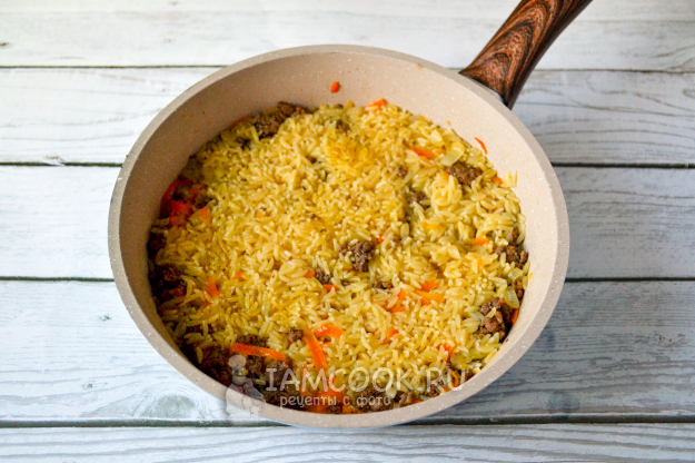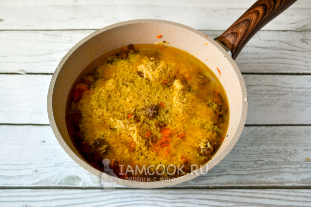 Влейте теплую воду. Закройте сковороду крышкой и доведите до кипения.