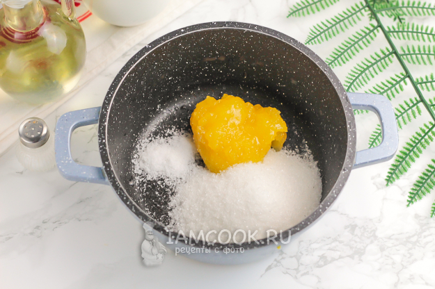 Выложите цветочный мед в казан или кастрюлю с антипригарным дном. Всыпьте сахар и соль, добавьте другие сладкие специи по вкусу: молотую корицу, ванильный сахар и т.д.