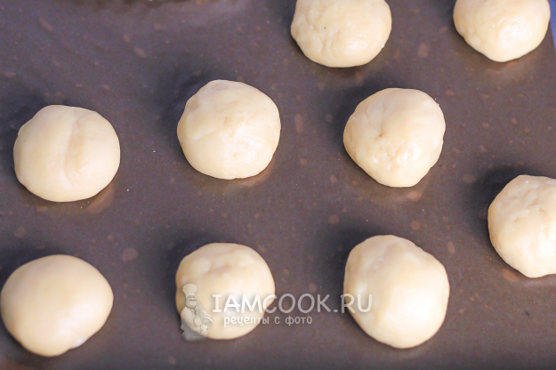 Смажьте пергаментную бумагу растительным маслом. Разделите тесто на равные части и скатайте их в колобки. Выложите на удаленном расстоянии друг от друга.
