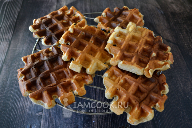 Испеченные вафли охладите на решетке, чтобы сохранилась хрустящая корочка.