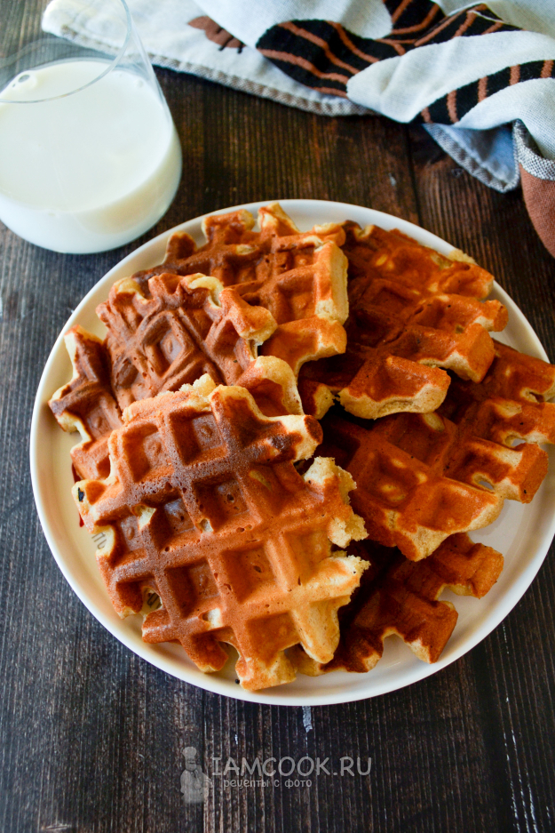Подавайте вафли с чаем, молоком.