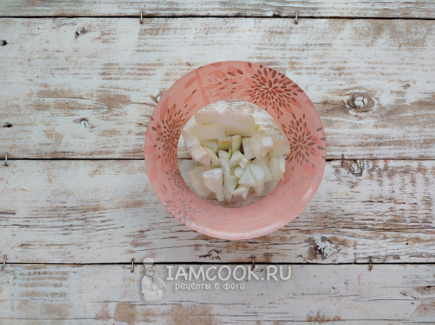 Луковицу мелко порубить.