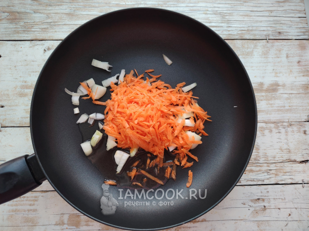 На разогретом масле обжарить лук с морковью до мягкости.
