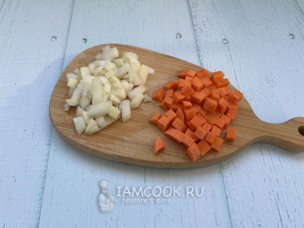 Морковь и репчатый лук очистите и нарежьте на мелкие кубики.