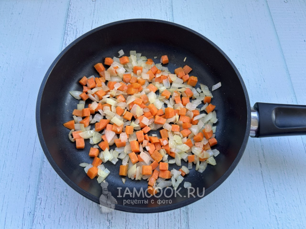 Обжарьте овощи на растительном масле, на среднем огне в течение 5 минут, до мягкости овощей.