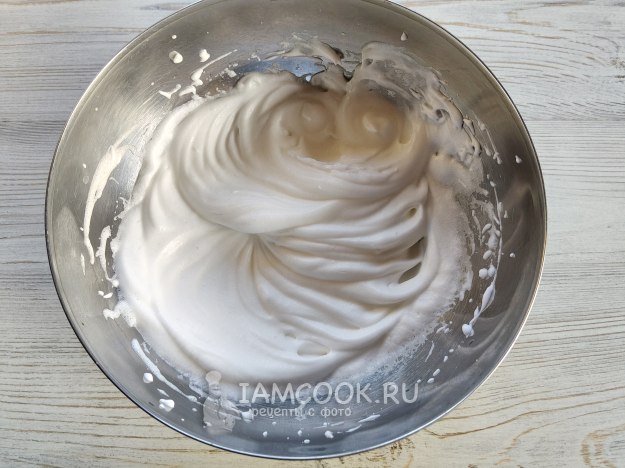 Ввести белки в крабовую массу, мешая аккуратно лопаткой.