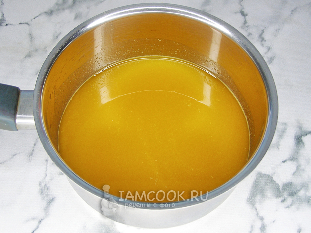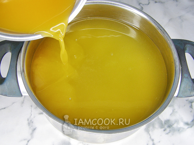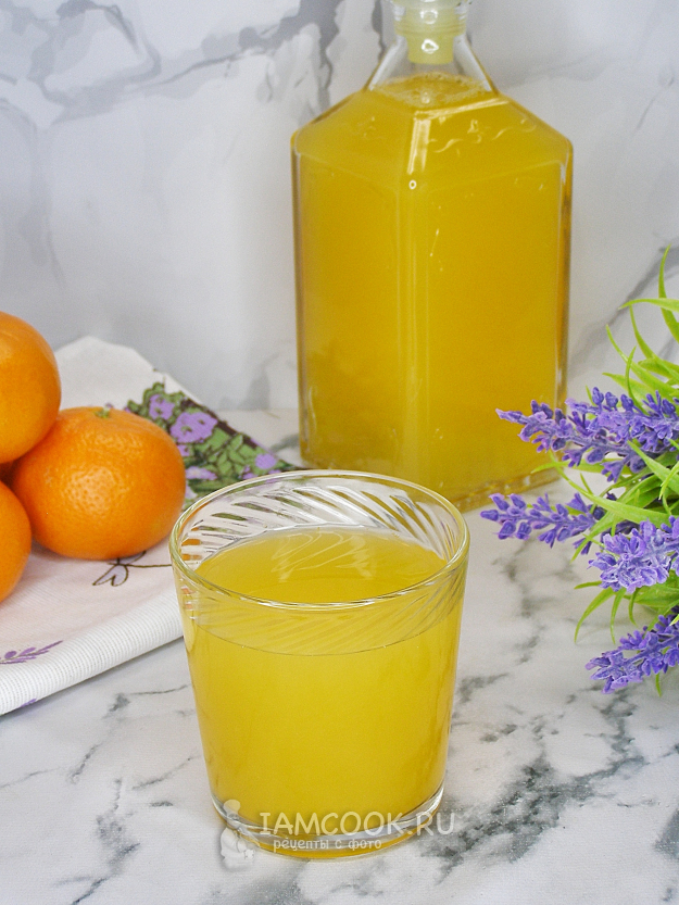 В остывший отвар вливаем мандариновый сок из холодильника и перемешиваем.
