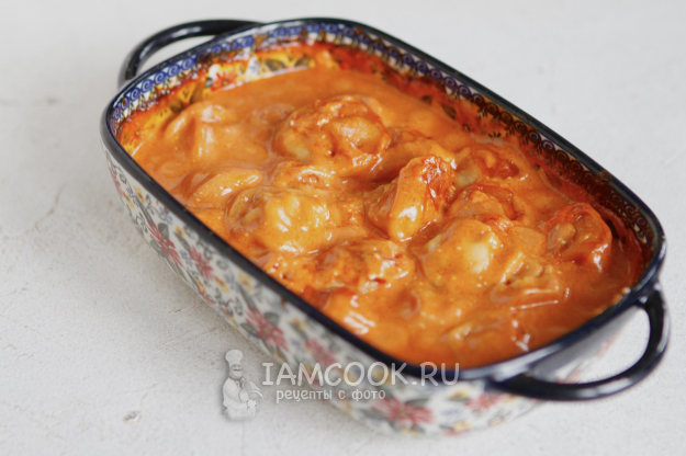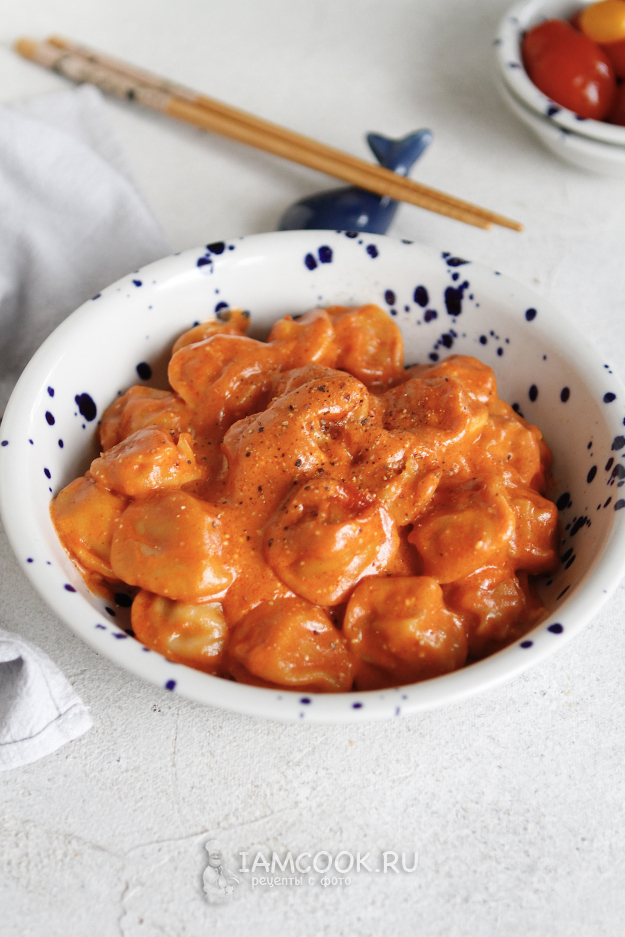 Залейте соусом пельмени. Соус должен полностью покрывать пельмени.