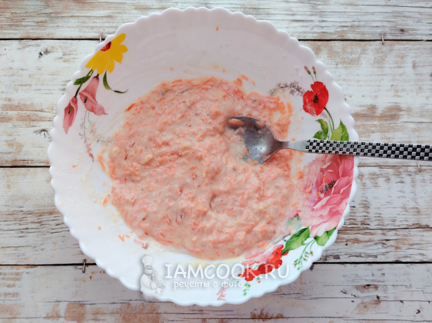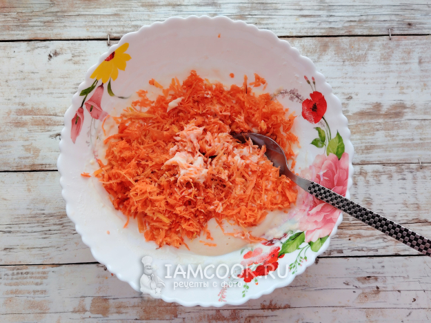 Добавить тертую морковку в тесто, снова перемешать.