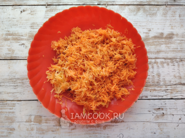 Морковь почистить, натереть на терке с мелкой ячейкой.