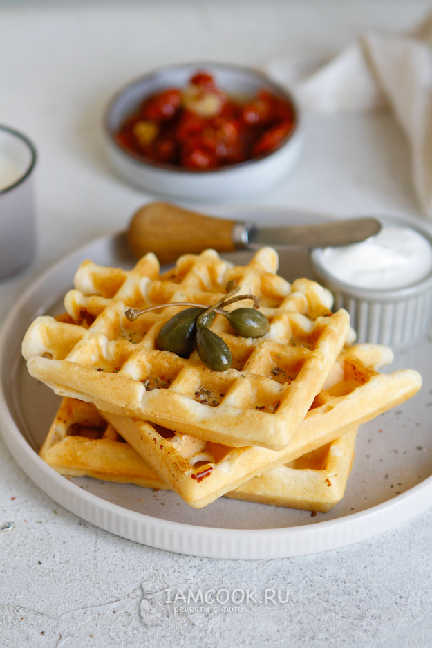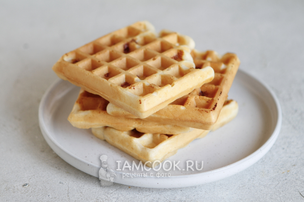 Из указанного количества ингредиентов у меня получилось 4 шт. Если планируете напечь побольше вафель, берите в два раза больше продуктов.
