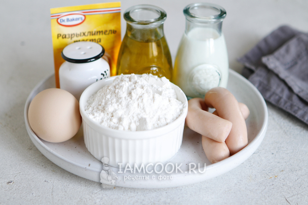 Соберите необходимые ингредиенты для приготовления венских вафель с сосисками.