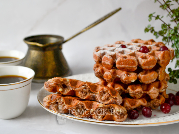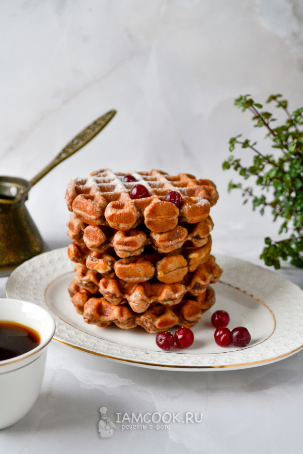 Испеченные вафли охладите на решетке, чтобы сохранилась хрустящая верхняя корочка.