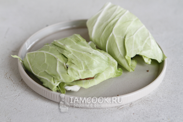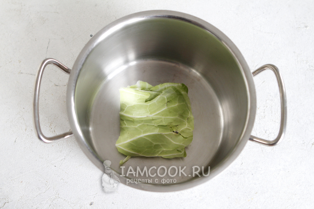 С кочана капусты снимите несколько верхних листочков, промойте и обсушите их бумажным полотенцем.