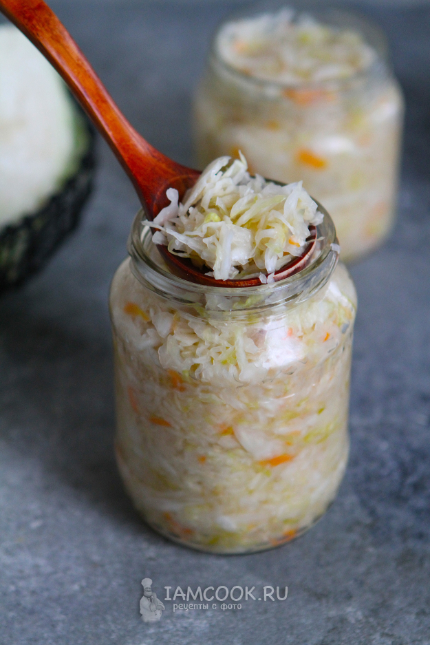 Разложите квашеную капусту по банкам и уберите в холодильник. Капусту раскладываем по банкам уже без кусочка хлеба. Кусочки хлеба за эти дни конечно же размякнут, на поверхности капусты могут плавать небольшие крошки хлеба. Так же аккуратно соберите их ложкой.