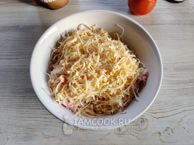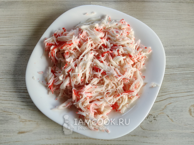 Палочки "Снежный краб" размять вилкой.