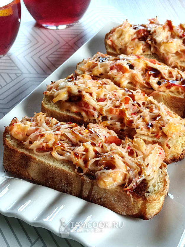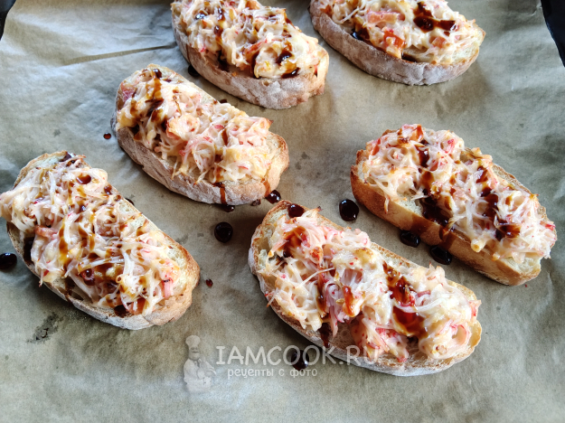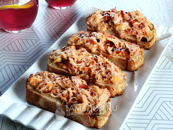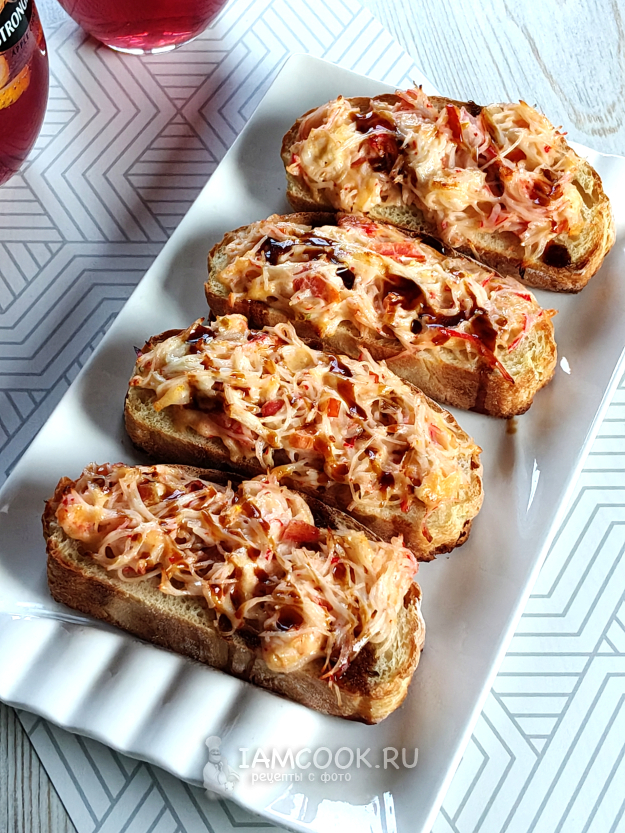 Горячие бутерброды со снежным крабом полить соусом.