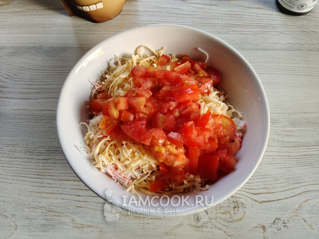 Нарезать кубиками помидор.