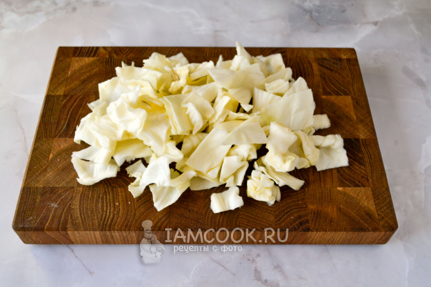 Капусту нарежьте квадратиками со стороной примерно 2х2 см.