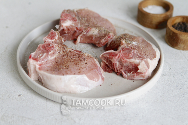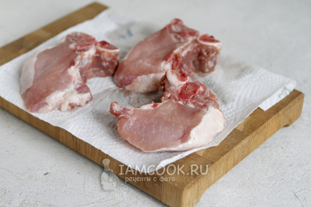 Мясо, в том числе и свинину, я покупаю на рынке. В этот раз выбрала кусочек молодого животного. Продавца сразу попросила разрезать корейку на порционные кусочки.