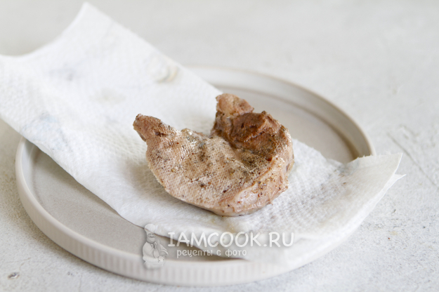 Мясо промойте под прохладной проточной водой и хорошо обсушите бумажным полотенцем.