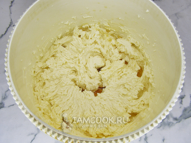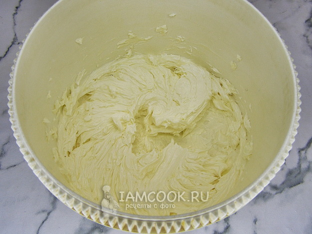 Размягчённое сливочное масло взбиваем миксером, чтобы оно побелело и стало более пышным. На это потребуется примерно 10 минут.