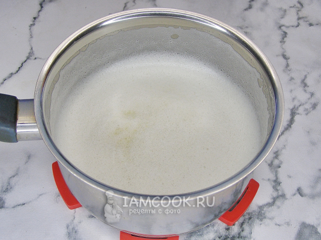 Горячий крем будет довольно жидким, но при остывании он ещё немного загустеет. Часто советуют остужать крем, накрыв его плёнкой в контакт, но я обычно ставлю сотейник в кастрюлю с холодной водой и периодически перемешиваю, чтобы не образовывалась плёночка.