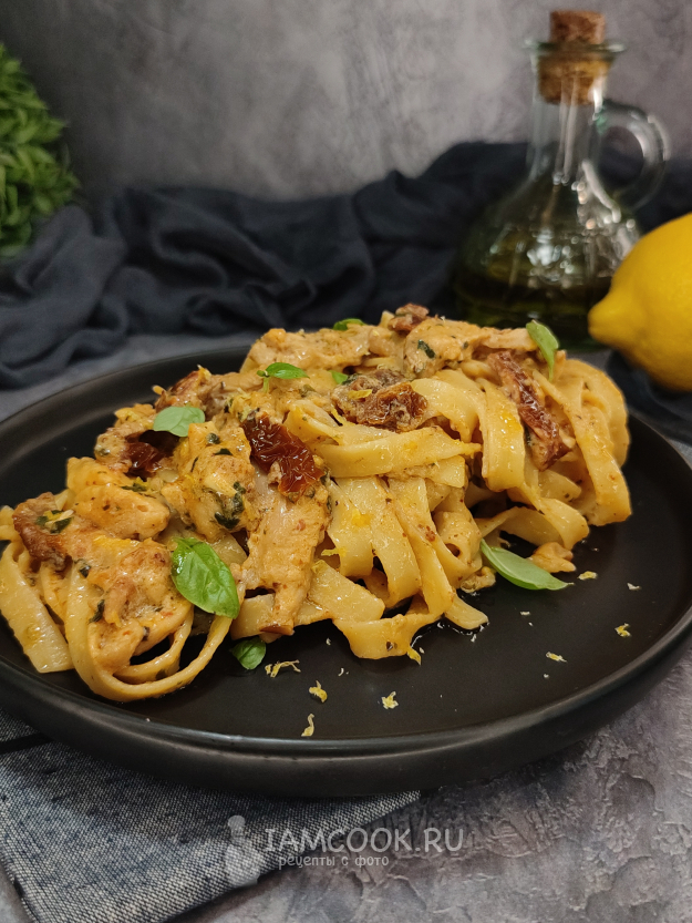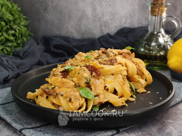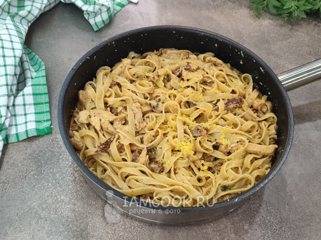 Соедините пасту с соусом, добавьте цедру лимона, перемешайте, и всё, паста с курицей и пармезаном (по мотивам пасты "Marry me") готова!