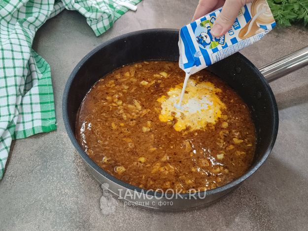 Добавьте сливки, проварите пару минут на слабом огне.