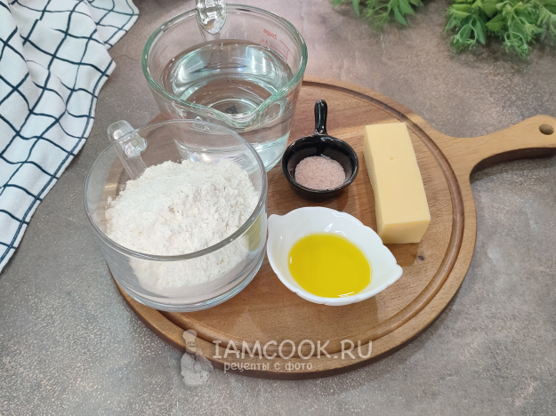 Соберите ингредиенты для приготовления кутабов без раскатки теста. Ингредиенты очень просты. В качестве начинки у меня будет сыр. Его просто натираем на мелкой терке.