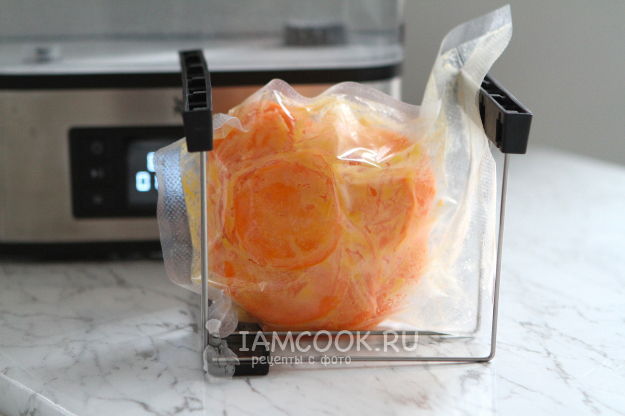 Добавила кусочек сливочного масла и немного меда. Переложила батат в пакет и завакуумировала.