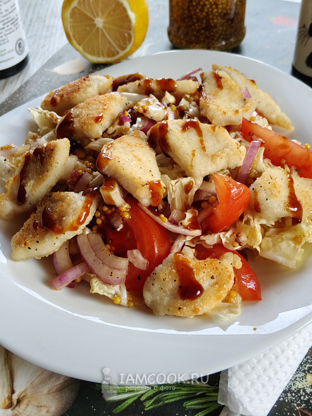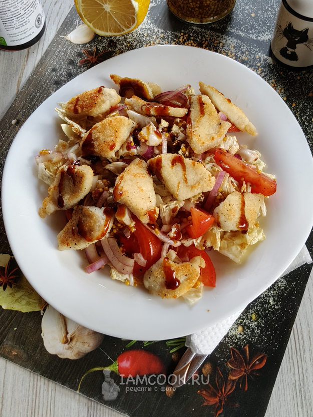 Салат с хрустящей курицей готов к подаче на стол.