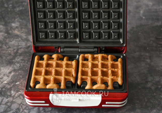 Закройте вафельницу и пеките вафли до готовности, примерно 4-5 минут. Все вафельницы разные, поэтому время выпечки регулируйте, опираясь на особенности своей техники.