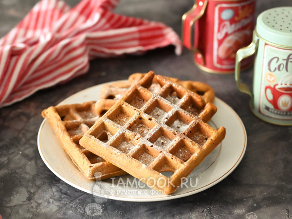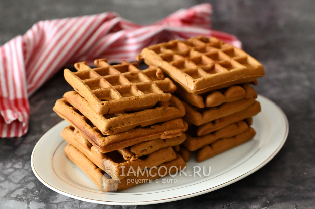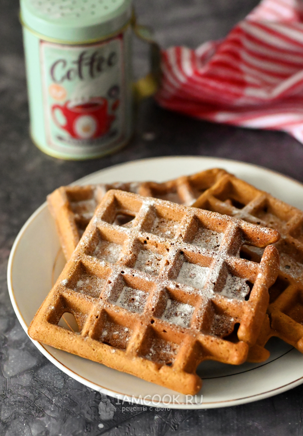 Готовые имбирные вафли подавайте тёплыми или остывшими. По желанию их можно чуть присыпать сахарной пудрой или подать со сметаной, сгущёнкой, растопленным шоколадом или арахисовой пастой.