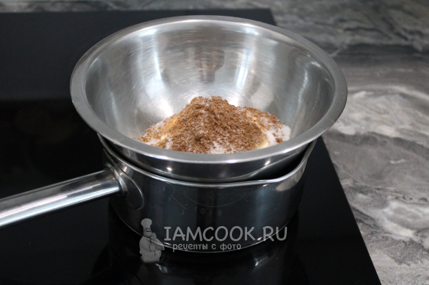 Включите сильный огонь, при помешивании дайте маслу растопиться и равномерно соединиться с сахаром и какао.