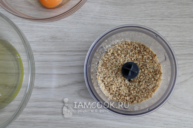Грецкие орехи измельчите в чаше блендера или в мясорубке.