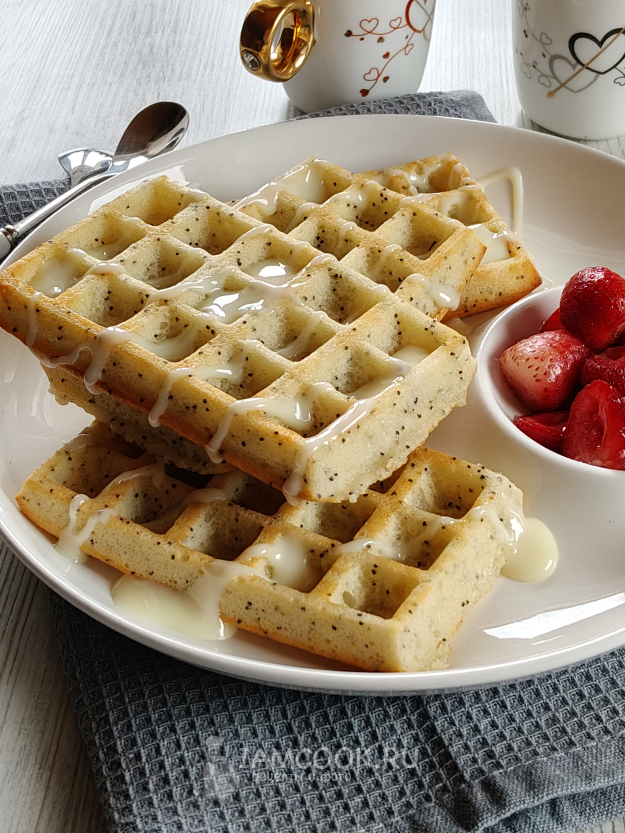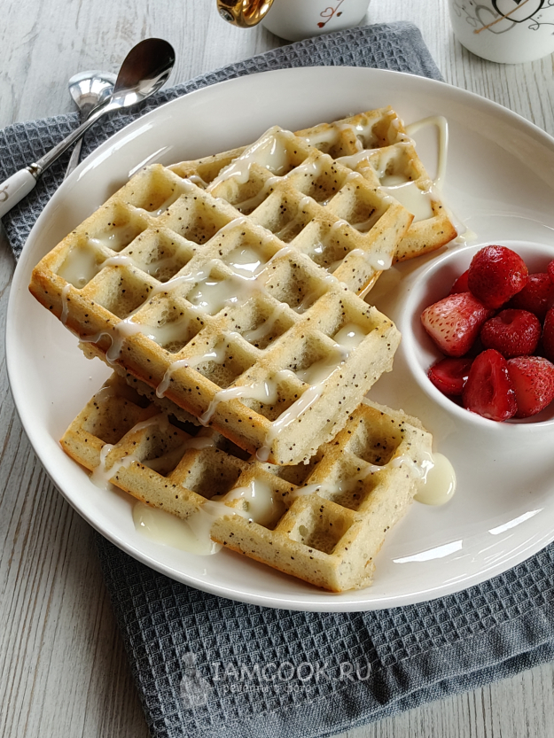 Подать вафли в теплом или остывшем виде.