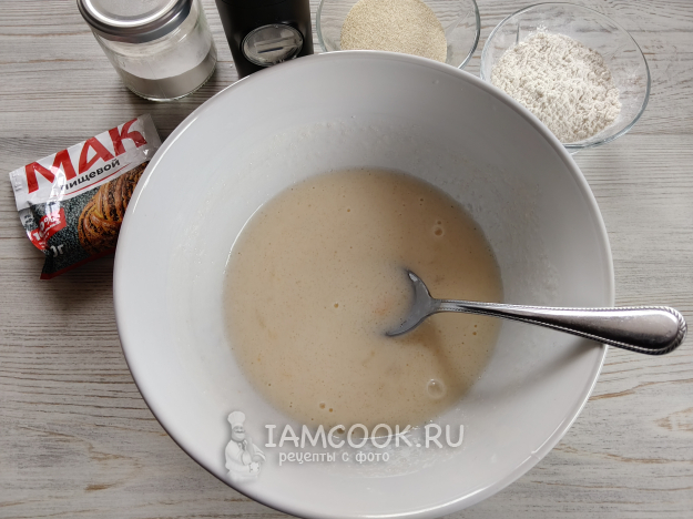 Добавить манку, муку, мак и разрыхлитель.