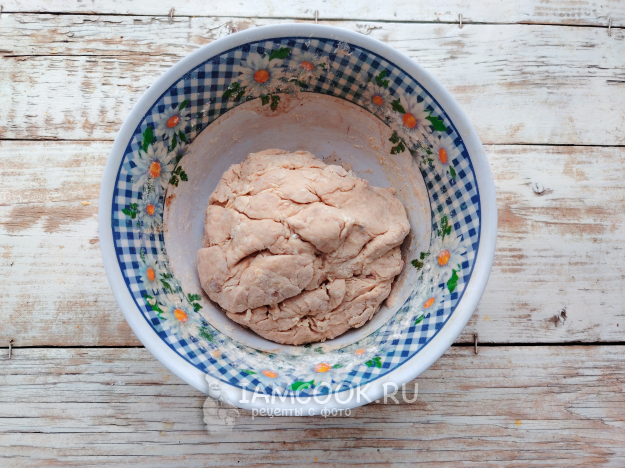 Замесить тесто. Оно должно получиться плотным, но мягким.