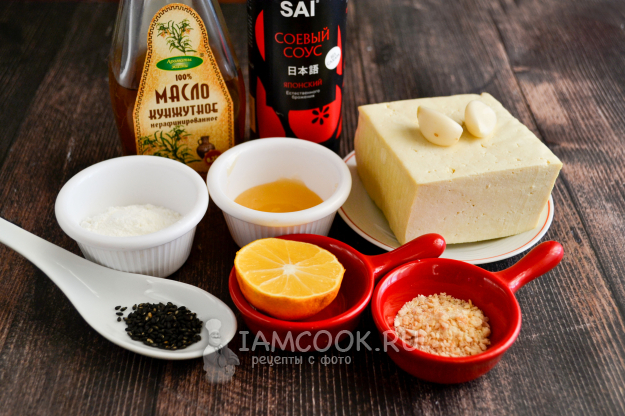 Соберите ингредиенты для приготовления жареного тофу по-китайски.