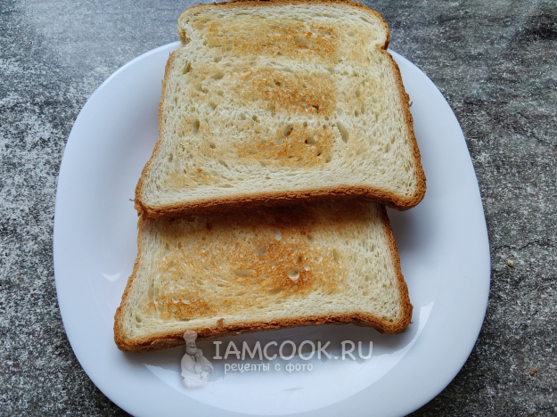Хлеб подсушить на сковороде, в тостере или в духовке.