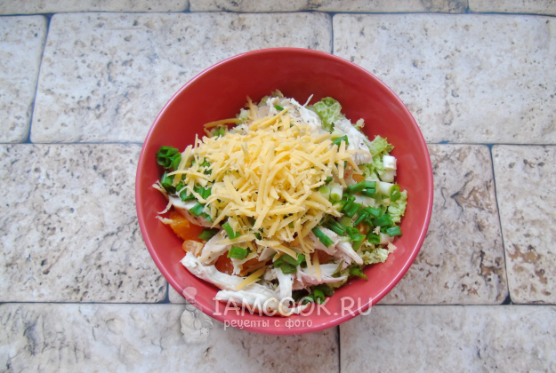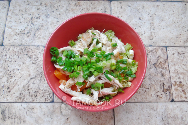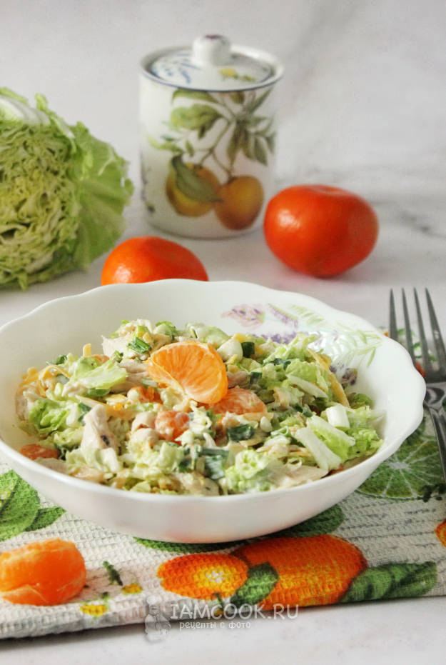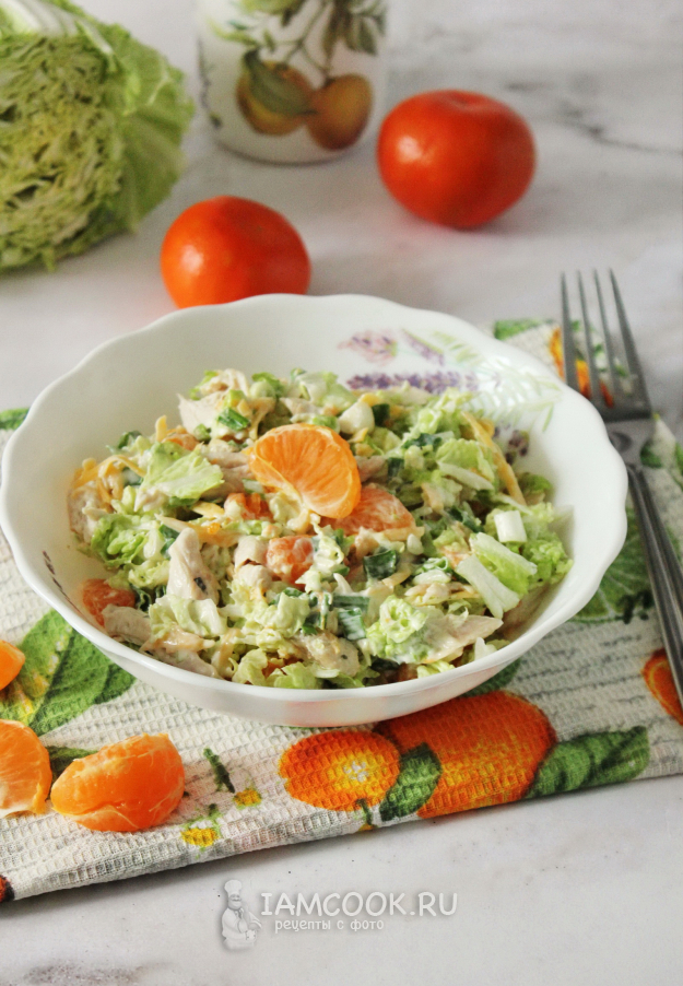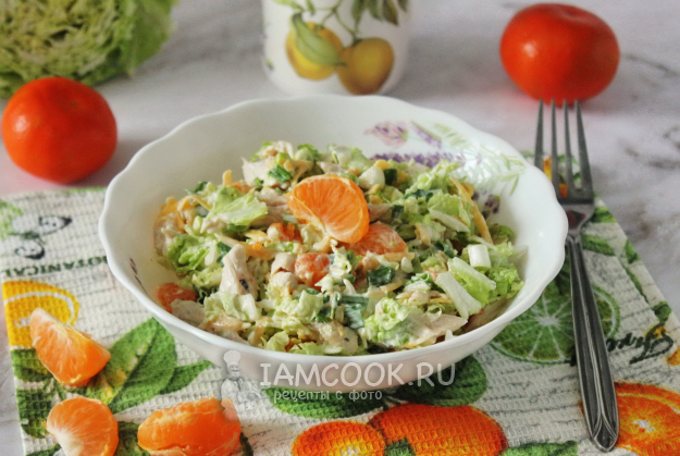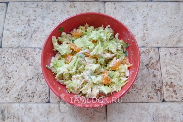 Салат с пекинской капустой, курицей и мандаринами готов.