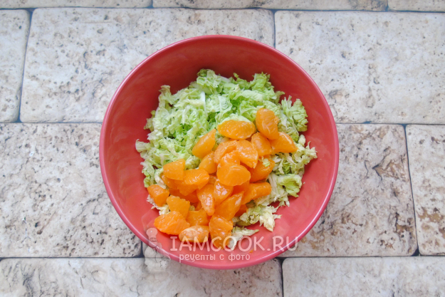 Добавьте мандарины в салат.