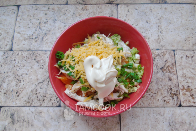 Заправьте салат майонезом.