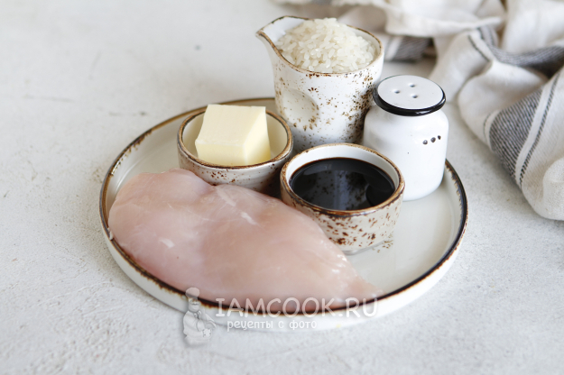 Соберите все продукты по списку и приступим к приготовлению куриного филе в соевом соусе с рисом.