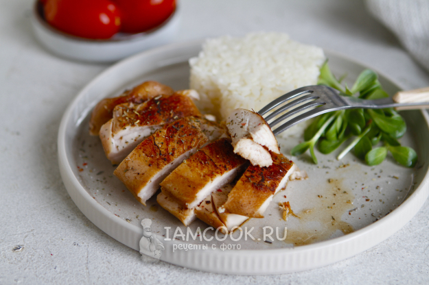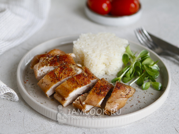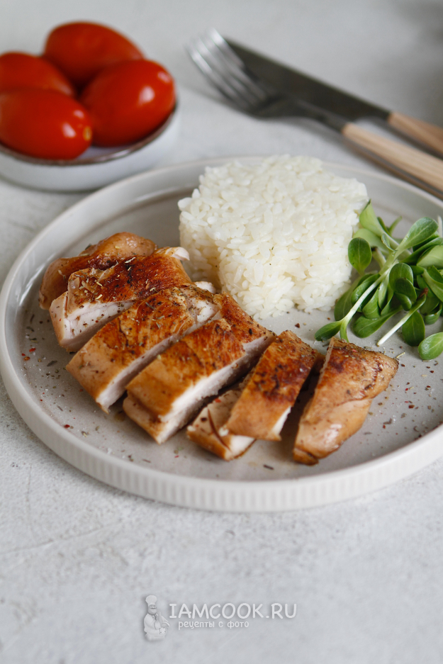В этом блюде, на мой взгляд, идеальное сочетание вкусов. Нежнее филе грудки я еще не пробовала. А рис получился очень рассыпчатым, хорошо пропаренным, рисинка к рисинке. Мой эксперимент, как мне кажется, очень даже удался.