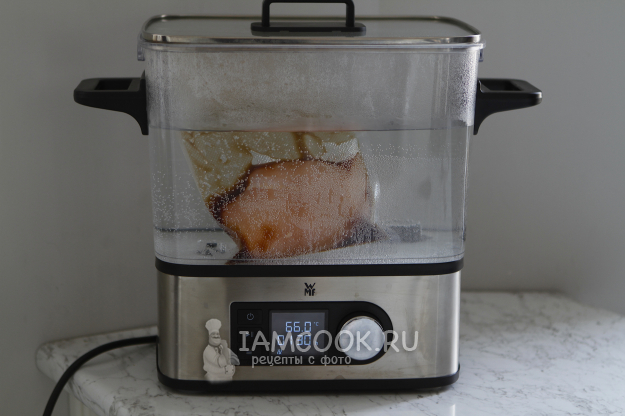 Чашу мультиварки заполнила водой. Выставила режим су-вид, температуру - 90 градусов, время - 40 минут (именно столько и рекомендуют на форумах кулинары).